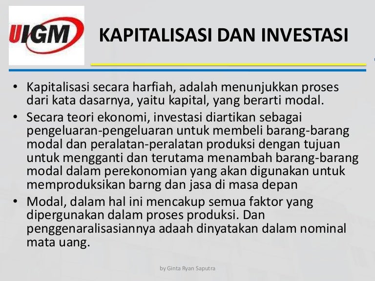 Pengantar Ekonomi Makro Kapitalisasi Dan Investasi